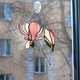 一条链条连接到彩色玻璃窗上。 可以使用套件随附的挂钩将彩色玻璃窗挂在窗户上。 或者放在窗台上。