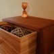 我们选择用红樱花木作为抽屉的主体,它的质地坚硬,木纹细致,色泽呈现红褐色,配上非洲柚木的抽屉,使的整体颜色更丰富,视觉上更有层次感。