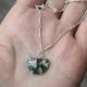 最近迷上森林系的宝石。这神奇的苔藓玛瑙又叫水草玛瑙,像是墨绿色水草漂荡在清澈河水中,介于透明至半透明的是二氧化硅晶体,绿色部分则是铁和锰天然形成的纹路。