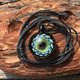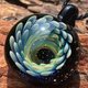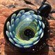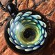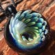 它是由手工制作的三维螺旋图案制成的耐热玻璃吊坠