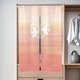 在柔和的粉橙天空下,一对和平鸽咬着象征爱与和平的草藤,筑起温暖的心形图腾——每一次门帘轻飘,都仿佛低语着:家,是爱与希望的所在。