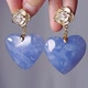 简约以**白茶花**造型耳针妆点**硕大**的**蓝纹玛瑙心(高度约36mm)**,最大程度体现蓝纹玛瑙宝石之美,是一**时尚美丽、大器富贵、静谧优雅**之美物,喜爱蓝纹玛瑙的朋友们值得收藏^^。