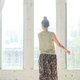将裙子翻面后,素面布料将成为主体,而腰部则以图案作为点缀。
