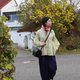 走路自带气场,自带艺术范儿,特别洒脱。裤裆属于微哈伦裤。