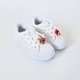 喜欢孩子穿小白鞋的爸妈有福了! 面料采用好清洁的合成皮革,有轻防泼水功能,不小心弄脏了,用湿纸巾擦拭或棉布沾洗碗清局部清洁即可!