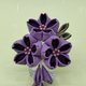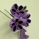 这是一款使用大人风的紫色古布(和服布料)制成的簪子,配有樱花花瓣造型的垂饰。