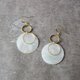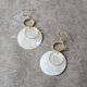 几何。黄铜天然白贝圆片耳环-2