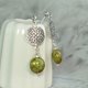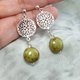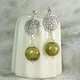 古典感 绿褐色 捷克琉璃圆扁珠 海蓝宝 美丽镂空银饰耳环