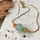 种老起胶、质地幼洁细腻、光感晶莹的路路通,色泽不到纯白,带一点底色,但又不到晴水那么明显的色调,是没有内纹裂、表面光滑明亮的好品质。旁边点缀的是六角型刻面的优质葡萄石与合金定位珠。
