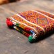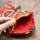 这是阿富汗的少数民族妇女,使用手工串珠、钱币或金属、刺绣跟布料,混合制作成的精致手工艺品,OMAKE将部分的设计截取裁剪,重新制作成钱包皮夹,每一个都只有一个