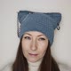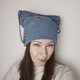 钩针猫耳朵豆豆大人非常棒,非常柔软亲肤! 带有猫耳朵的方形无檐小便帽。 女士毛绒帽子是本季最时尚的配饰! 带耳朵的蓬松猫耳帽是送礼的好主意! 温暖的无檐小便帽手工编织。
