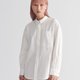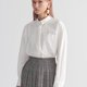 以纯棉的斜纹面料设计而成的衬衫。布面不明显的微微光泽呈现出高级纱线的纯棉质感。正面以隐型门襟开扣方式隐藏整排扣饰,落肩的版型于后背肩档剪接一个箱型折并缝上一字环,珍珠白的衬衫整体轮廓简约又有个性。可搭配针织背心或毛衣款式让下摆外露,呈现秋冬多层次的穿搭造型。