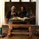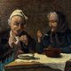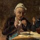 - 温馨的乡村风格老油画作品,描绘一对老夫妇共进简单餐食的场景,神情自然生动,充满生活气息与人情味,约制作于19世纪末至20世纪初,画面细节如陶壶、玻璃瓶与木桌等皆呈现出浓厚的欧洲乡村日常氛围,具有高度装饰与艺术价值。