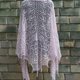 This cloth is unique. It goes wonderfully with the evening dress or the bridal outfit. In the same way, it can also be worn casually with jeans. Due to the shawl, there are always new wearing possibilities. This lace cloth in the color natural (material: merino wool 75%, silk 25%) is hand-knitted by me. It is wonderfully soft, very comfortable to wear, falls fluently, is slightly shimmering and can be combined in many ways. Dimensions: upper edge = approx.215 cm Center = approx. 105 cm This cloth is lovingly hand-knitted, washed and stretched by me. Please note that depending on the setting, the colors may vary! Laundry: Hand wash cold with very little wool detergent, without fabric softener, do not wring and only slightly squeeze. Stretch in damp condition.