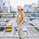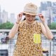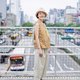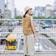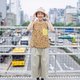 长颈鹿的斑纹/芥末黄格子布料拼接口袋/下摆球形立体拼接