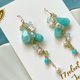 蓝绿色交融,美丽的天河石在长耳环中闪耀。