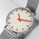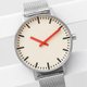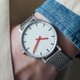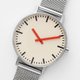 手表采用色彩指针设计,搭配柔和乳色表盘;