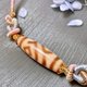 双鱼二眼天珠的功效相当显着,特别在促进人缘与改善感情方面,能为佩戴者带来幸福的氛围,并增强智慧,有助于事业及家庭的和谐。这款双鱼二眼天珠渐层如意编绳颈圈不仅是艺术与手工的结合,也是为每位佩戴者提供情感与运势支持的吉祥饰品。