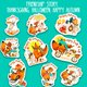 1 general PSD file by layers, each sticker - full picture, inscription and white background. Resolution approximately 3000 by 3000 pixels, 300 dpi.