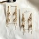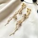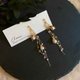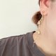 Clip-On /pierced earrings with plenty of nuances that combine pearl-like flower lover , small clear beads, and pearl chains.