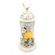 花材选用:日本永生轮菊(黄)、小菊(绿芯白)、豆铃兰(蓝紫)、旱雪莲(橙黄)、尤加利小圆叶(黄绿)、木百合(橙)、百万星(白)、蓬莲(浅金)、卷丝草(浅金)、鼠鞠草(绿)、绣球花(绿)、茶花叶、苔藓(绿)