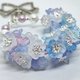 坦桑紫色琉璃铃兰花,搭配天空蓝,湖水蓝,米白色铃兰花,一共30朵琉璃花拼凑 搭配白色,浅紫色贝珠 花篮上配上琉璃萤光白/粉紫蓝色蝴蝶