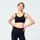 双肩带运动内衣由加压机能的排汗布料制成,高弹力、四面延展、吸湿排汗、保持凉爽。