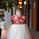 这件礼服上半身使用旗袍版型 下面裙子里使用新娘缎外层再加纱以增加澎度