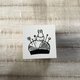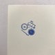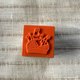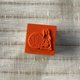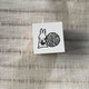 这是一颗 20mm x 20mm 的小型橡皮印章。 盖上黑色墨水后,再用色铅笔稍微为纱线球或钮扣部分增添色彩,便能呈现出红色、黄色等不同风格的样貌。