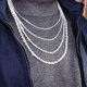 方形棱角链以带有棱角的厚实链圈构成,线条俐落的结构散发出刚毅气息,更使银链随着不同角度变换光泽,时而沉稳时而率性,展现大方独特的自信风格。
