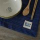 以两片不同花色的古布缝制而成,正反两面皆可使用,除了当餐垫,还能做为隔热垫。