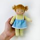 这款小巧的 Waldorf 口袋娃娃高 7 英寸 (18 厘米),是适合小手抓握的完美尺寸。她采用环保材质制成:脸部与手臂使用棉质针织布,身体使用棉质绒布,头发使用马海毛纱线,眼睛与嘴巴以绣线绣制。她的身体与头部填充 100% 有机羊毛。