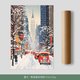 画面中最迷人的亮点,是一辆辆鲜红色的经典车辆穿梭在雪地中央,与商店外的橘红旗帜相呼应,形成充满节庆感的视觉节奏。街边的行人、店铺的暖光、积雪覆盖的树枝,都让整幅作品充满“冬季纽约”特有的浪漫与生活脉动。