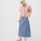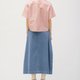 水洗蓝解构拼接牛仔裙,使用特殊酵石洗处理,撞色压线加上拼接设计,品牌织标相当细致可爱,面料弹性,是一件非常百搭的单品。