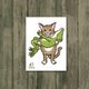 猫咪正温柔地抱着青蛙。就像抱着公主一样。