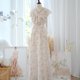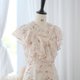 前后皆有荷叶边设计的长洋装,前后皆为宽领V领,附有绑带可系于腰间,背后拉链,内里完整。