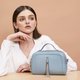 包身设计虽然外观看着不大,但是侧面比较有厚度因此内部空间十分宽裕哦~上部装有一根伸缩式手提柄大大增强了实用性。设计师推荐清新雾霾蓝,浅灰蓝配上银色的五金让原本厚实的包身不会显得那么沉重,是今年毕入的单品哦!~