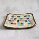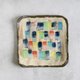 这是一块方形盘子,具有手工制作的感觉,是通过徒手粗略切割和塑造滚压的粘土制成的。
