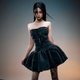 - 【牛仔抹胸連衣裙】複古做舊綁繩收腰蓬蓬裙