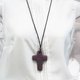 **紫色火山石大十字架项链-皮绳75cm 可滴入精油扩香**