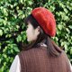 段染丝绒材质市面上比较少见 , 因此特别选用此材质钩织贝雷帽, 橙红色十分显白,令整个人气色也变得更好 , 另外由于是段染丝绒的关系 , 橙红的颜色较多变, 不同灯光有不同的深浅, 颜色丰富多变。每个帽子的颜色也有差异, 因此每顶帽子也是独一无二。