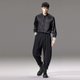 版型:宽松. 服装款式细节:纽扣装饰. 材质成分:聚酯纤维100%. 适用季节:秋季. 面料功能:免烫. 袖长:长袖. 领型:立领. 尺码:M170,L175,XL180,2XL185,3XL190. 颜色:黑色.