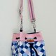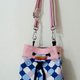 配合主色布,使用2色拼接上与下制作水桶包,基本造型,增加底部宽度
