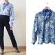 • 复古长袖上衣,附赠丝巾,印有花瓣图案,色彩柔美,布料柔软,领口设计独特,别具一格。