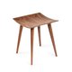 - 胡桃木荷曲方凳设计灵感来自于荷叶优雅弯曲的形态,椅面手工打磨出微微的弧度,椅脚衔接处结合传统斜接工法与现代加工技术,再以手工细细打磨出火山口造型,圆锥形椅脚模拟荷杆在水中挺立,象征偏乡青年以手工木作家具技艺扎根家乡。