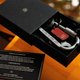 订制的极简黑色系列的触感纸盒,材质抗压厚实,完美保护铝合金钥匙扣,正上方的烫金标志,表现出品牌的奢华感,抽屉盒的设计提供完美开箱体验,让收礼的人开心、送礼的人更有面子