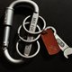 铝合金扣环上,搭配了三个枪灰色的钥匙圈,这样的设计可以将公司、住家及汽车的钥匙分开收纳,除了找钥匙的时候不容易搞混,也能够方便快速地将钥匙拆开来借人