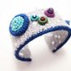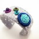 组成:100% 蕾丝棉线、进口高品质亮片线、爱尔兰蕾丝、串珠蕾丝、日本玻璃小珠、施华洛世奇水晶珠、天然紫水晶珠、开口手镯底座。