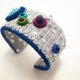 该款商品由爱尔兰蕾丝及串珠蕾丝钩法所制成。银色亮片的织片上装点着靛青、蓝绿、宝蓝、草绿及紫红的蕾丝花片,并点缀着蓝绿色日本玻璃小珠、施华洛世奇水晶珠及天然紫水晶珠,独特的设计传达出强烈的个人风格及现代感的样貌。