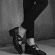 - Fw16 grunge girls Black ballet high heels 由ballet shoes 元素 换上高跟底部 鞋面交叉搭扣 配上小圆钉拍扣细节 演变成grunge style。 除了skinny jeans / 裙